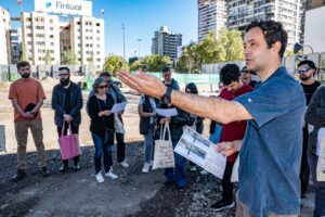 En el marco de la XXIII Bienal de Arquitectura, el equipo Nueva Alameda del Gobierno de Santiago participó en una visita guiada a las obras del Nudo Baquedano, actualmente en ejecución. La actividad contó con la conducción del arquitecto Arturo Lyon y se desarrolló el sábado 27 de septiembre, ofreciendo a las y los asistentes una mirada directa al proceso de transformación de este espacio emblemático de la ciudad.