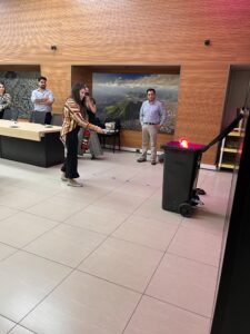 Durante la jornada, las y los participantes recibieron una inducción teórica sobre los distintos tipos de extintores, sus características y criterios de uso según la naturaleza del fuego. Posteriormente, se realizó una práctica guiada con simulador, lo que permitió aplicar los conocimientos adquiridos en un entorno controlado y seguro.