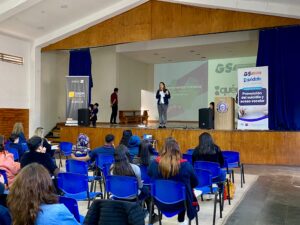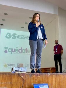 El jueves 25 de septiembre se realizó la Charla de Prevención del Suicidio y Acoso Escolar del programa Quédate, en el Liceo Arturo Pérez Canto, en Recoleta. La jornada contó con la presencia de la jefa de la División de Desarrollo Social y Humano del Gobierno de Santiago, Nicole Sáez, quien destacó la importancia de fomentar las herramientas preventivas dirigidas a toda la comunidad escolar.